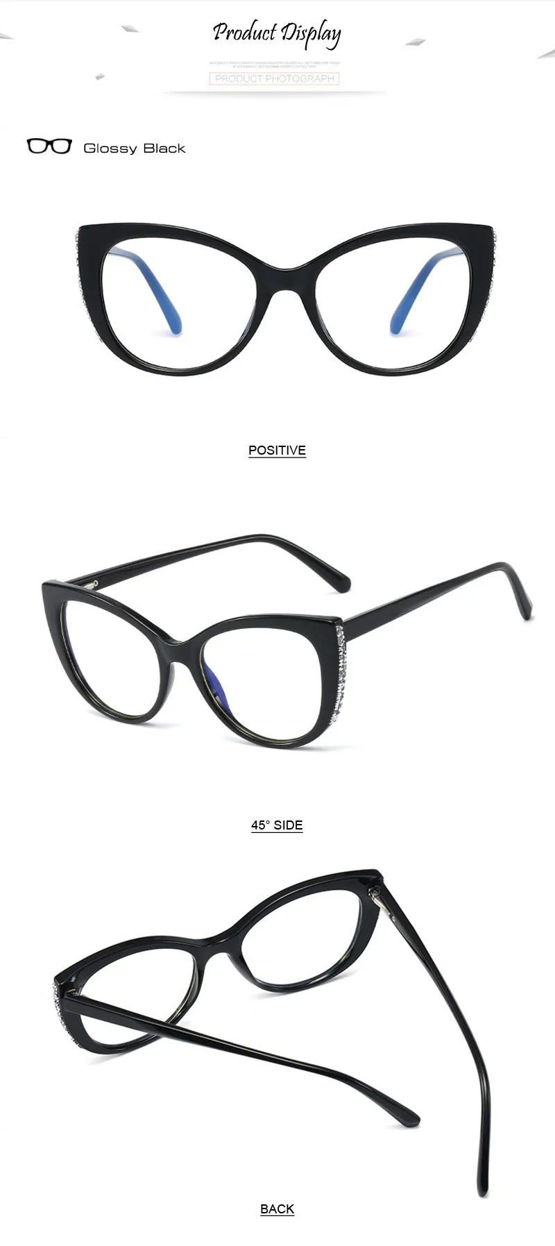 Женские очки кошачий глаз SHAUNA, оправа для очков с алмазным покры...