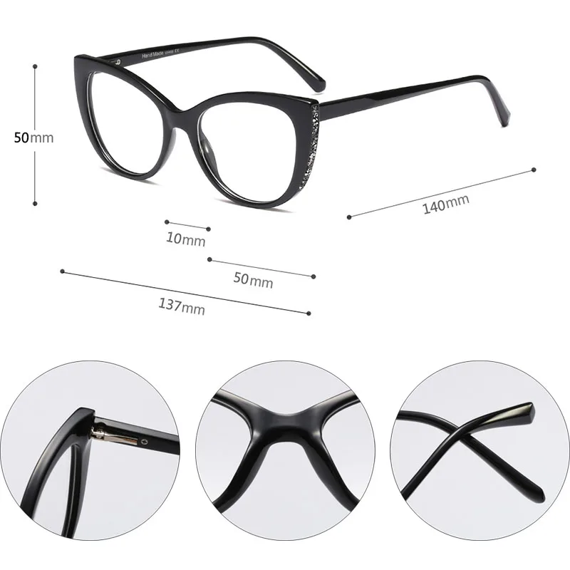 Оптические очки SHAUNA, большие очки в оправе кошачий глаз с алмазн...