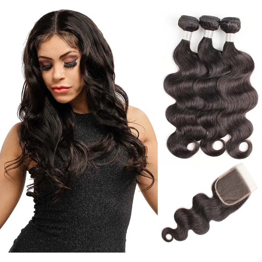 Натуральные волнистые 100% человеческие волосы, бразильские волосы Remy, 10 -26 дюймов с закрытием