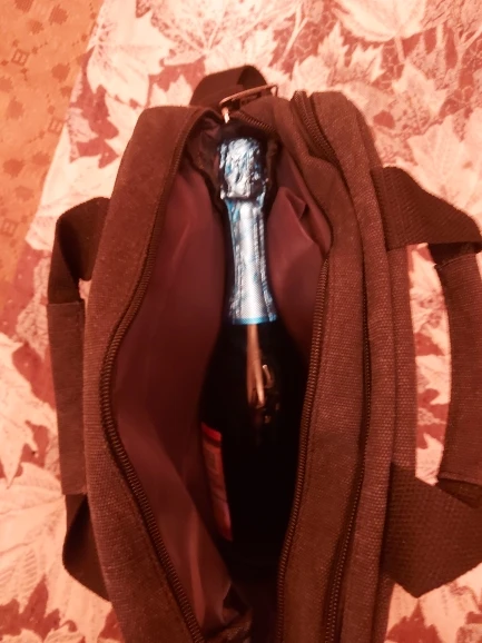 Сумка выглядит качествено, бутылка шампанского влезает легко, на мой взгляд дороговато за эти деньги, побродил по нашим магазинам, такую же можно взять за пятьсот пятьдисят руб, но уже поздно придеться пользоваться:)