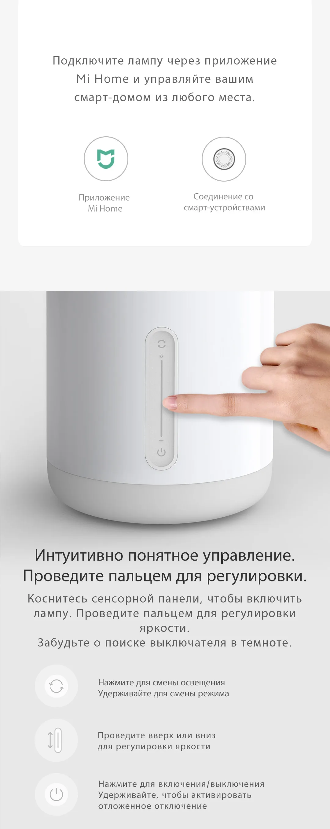 Полный обзор на youtube канале: СРУКОБЗОР красивый светильник, может быть также и ночником. Добавляется в приложение Mi Home автоматически быстро. Также можно управлять голосом через Алису. Засыпать с такой прикроватной лампой одно удовольствие.