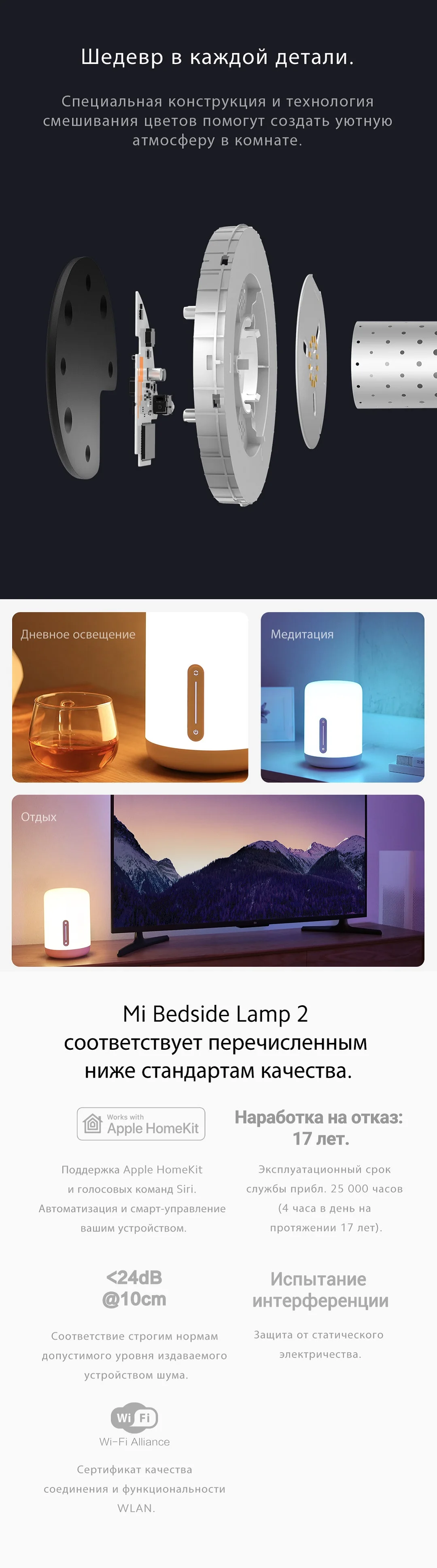 Лампа мне понравилась, можно настроиться любой цвет и яркость. Управление сенсорное. С айфона подключается только к Home Kit., приложение Сяоми не находит устройство, очень жаль, потому что надеялась настроить как будильник к определенному времени, чтобы легче вставать зимой.