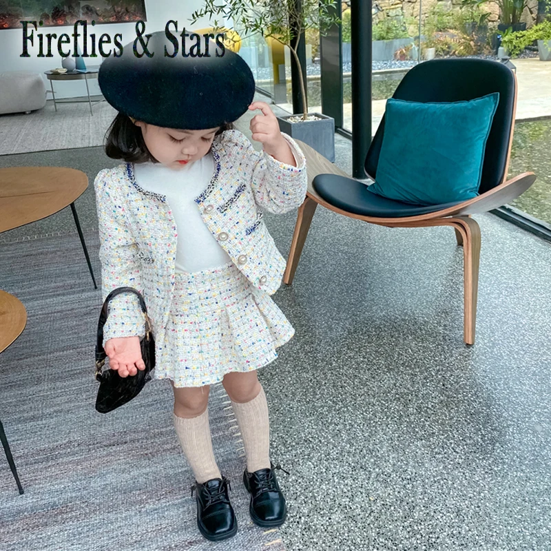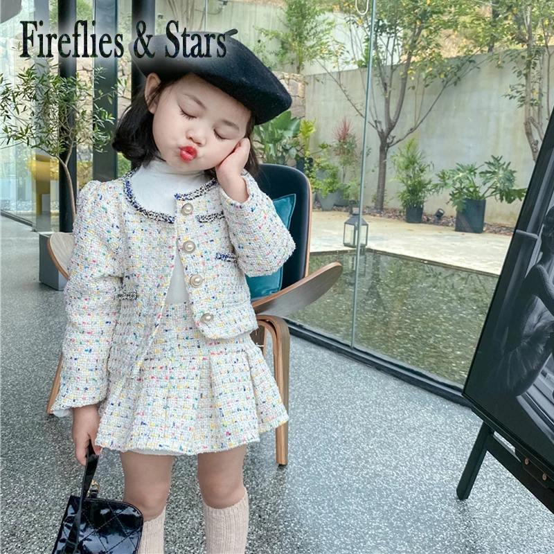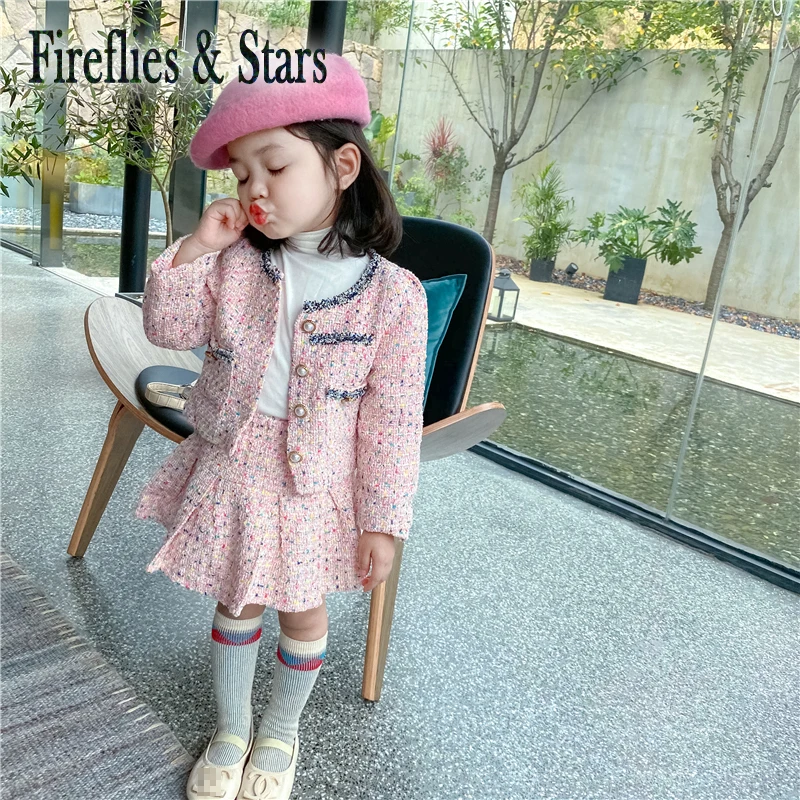 Комплект из 2 предметов для девочек 1-7 лет, Детская куртка и плиссированная юбка, брендовая одежда с круглым вырезом и жемчужинами