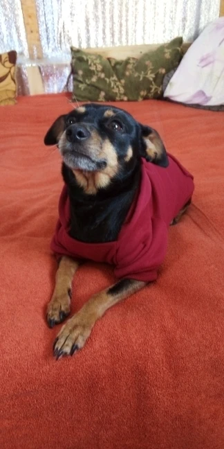 кофта неплохая, но размер маловат. на шпица 5кг весом получилось впритирку. качеством и цветом в целом доволен.