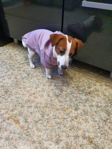 WOW .. заказ пришел в течение 9 дней, круто! Толстовка симпатичная, размер XS идеально подходит для нашего пуделя (zabawke), цвет милый, как на картинке, внутри нежный полосок, это замечательно!