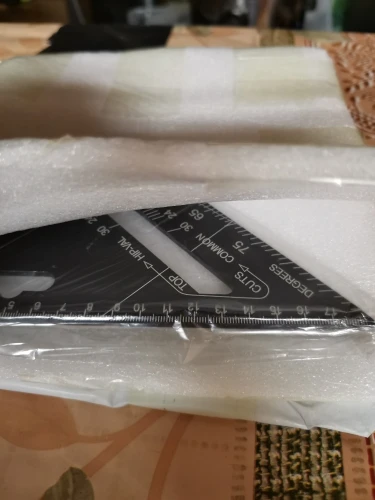 угольник шел довольно долго, но пришел без повреждений. запакова в картон и вспенный материал. шкала нанесена хорошо, соответствие эталону не проверял, углы вроде тоже в норме. при выявлении недостатков дополню отзыв