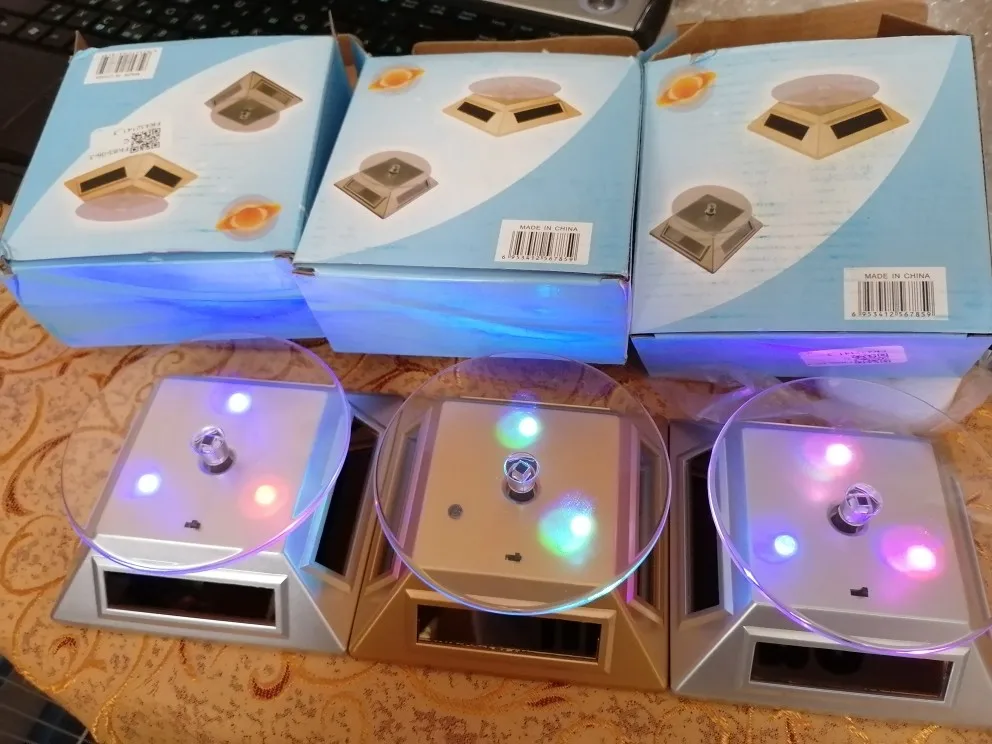 доставка быстрая. описанию соответствует. заказывал с подсветкой, прислали без светодиодов. открыл спор предложил вернуть разницу в цене. продавец сразу согласился, часть денег вернули. продавец честен. рекомендую. к сожалению мощность моторчика маленькая. передмет весом 200г создаёт слишком большую нагрузку на мотор и площадка начинает вращаться рывками.