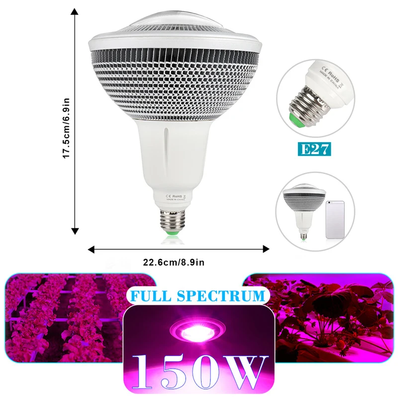 Фитолампа светодиодсветодиодный полного спектра для выращивания растений, Е27, 100150300 Вт