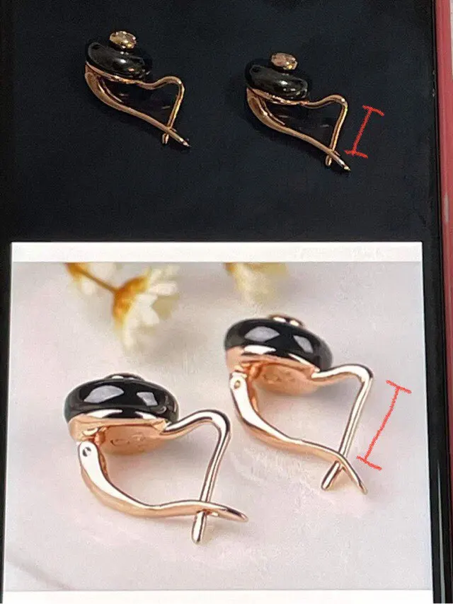 Серьги очень хороши для первого вида, розовое золото вместе с черной керамикой-это моя любимая вещь, В любом случае, это Питти, что он сделан для маленьких ушек-когда у меня их больше одного часа, он давит на мои уши, к сожалению, не удобно носить их весь день или дольше. Так что для некоторых девочек хорошо, но для взрослых я не могу переделать. На фотографии, таким образом, не было видно-см. conparision foto.