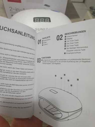 Отличное качество лампы! Катализатор очень хороший, сильный свет и нет проблем даже с большим пальцем! Мне нравится функция «низкий нагрев», которая приносит все больше и больше света, чтобы не перегревать ноготь