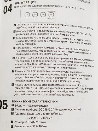 Упаковка была доставлена мне очень быстро, через 10 дней. Заказ в соответствии с описанием. Упаковка очень хорошо упакована в конверт с пузырчатой пленкой. Коробка упакованной лампы, так как вы видите на картинке. Лампа для ногтей очень хорошо работает и очень хорошо сделана. Все горит свеча, так как вы видите на картинке. Лампа очень хорошо горит.