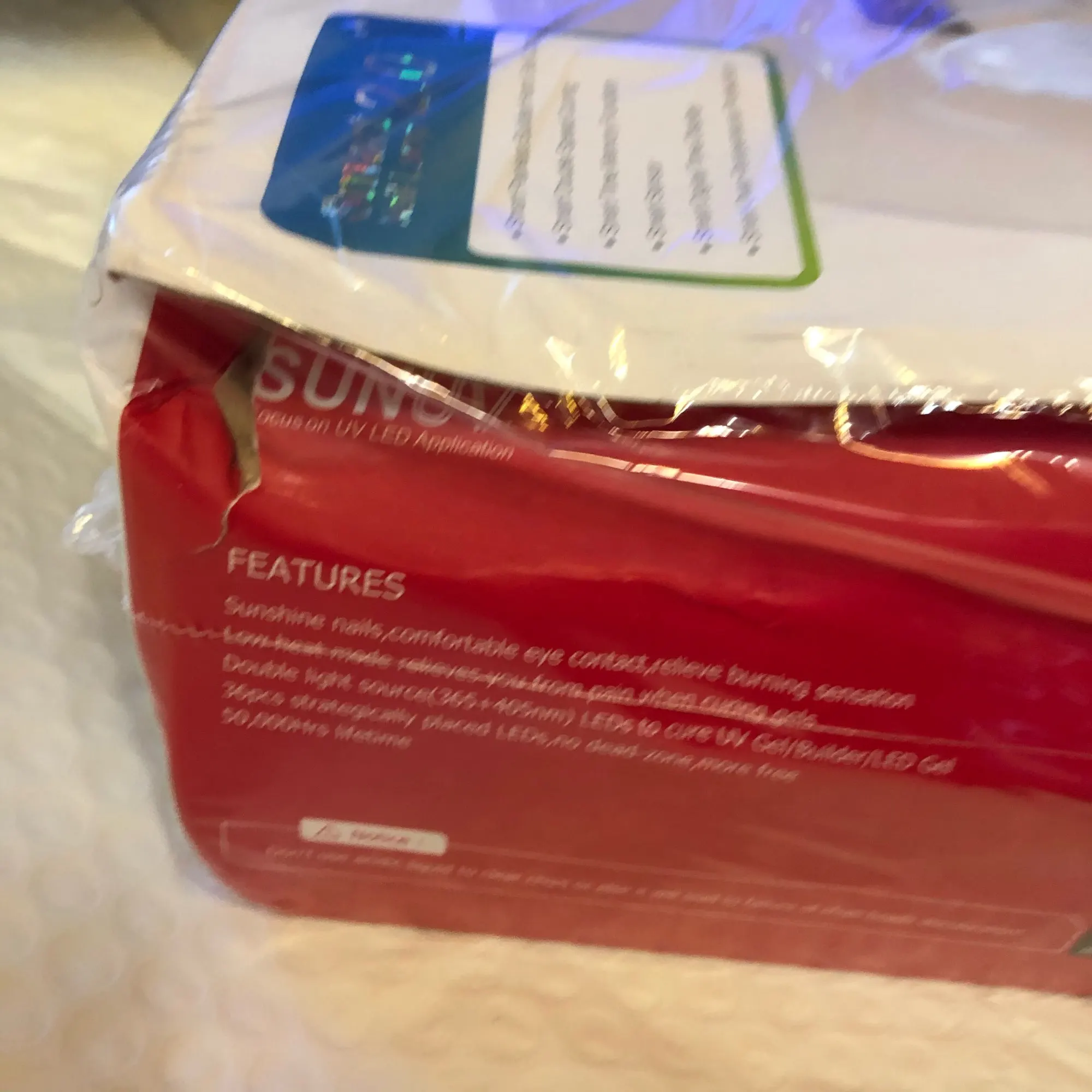 Пришла очень быстро , как и многие писали коробка помята но всё целое ! Отлично работает ! Ни царапин ни повреждений ! Всё отлично работает . Кнопки удобные , работает мощно , сушит прекрасно и рубер базы и гели и акрилатик . Пришла вовремя моя прослужив два года погорела в месте где где входит провод в лампу , удивлена что она столько продержалась хотя и падала ни раз ). Брала предыдущую тут же . Спасибо продавцу !