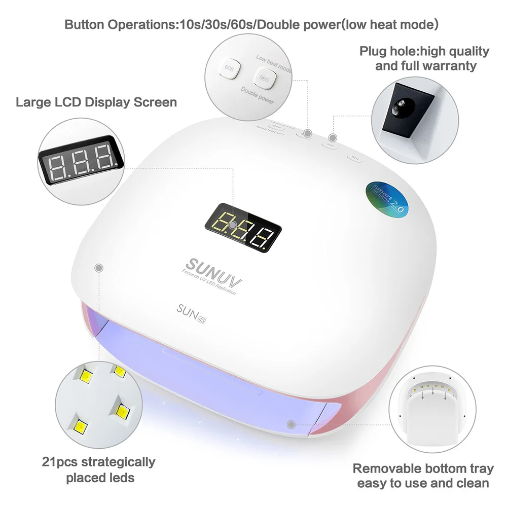 Лампа для ногтей SUNUV SUN4S4 48 Вт, УФ-светодиодная лампа для сушки гелей, лака с интеллектуальным датчиком, оборудование для маникюра и дизайна ногтей