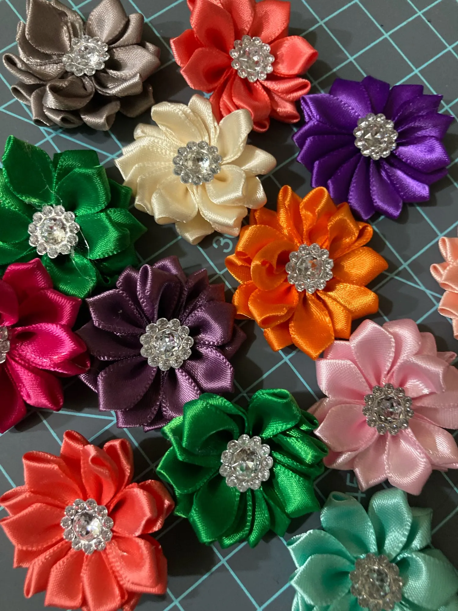 Атласная Розетка Nishine 1,6 дюйма, 20 шт.лот, 16 лепестков, цветы с акриловой кнопкой, используемые для сделай сам, зажимы для повязки на голову, аксессуары для волос