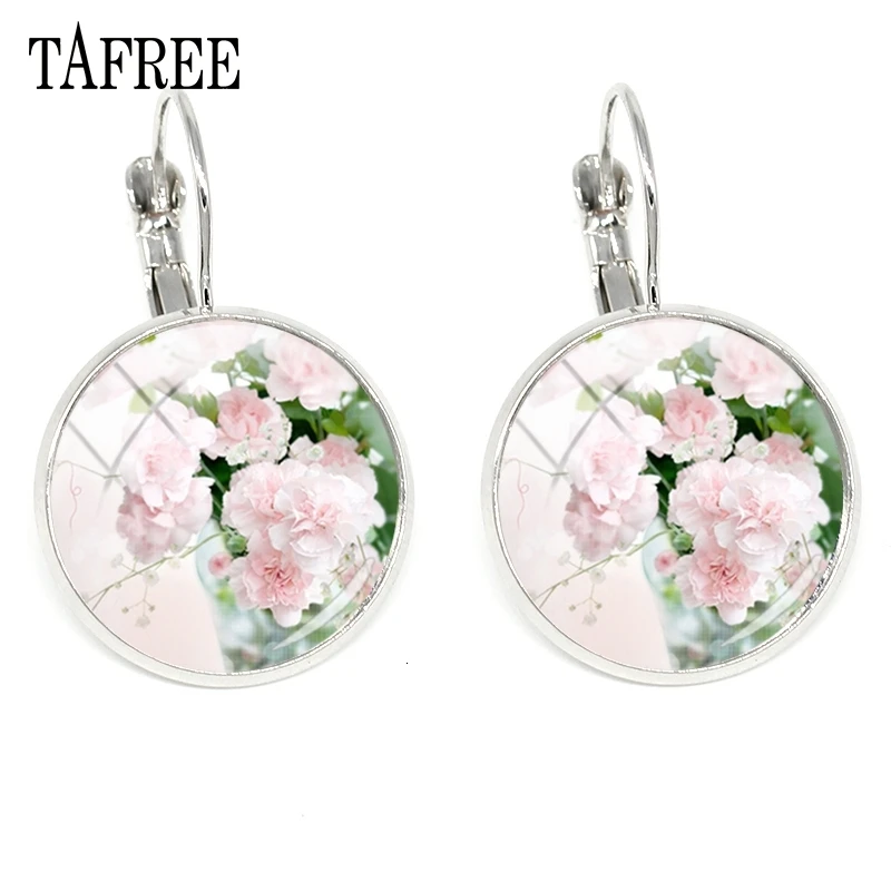Серьги-гвоздики TAFREE, стеклянные кабошоны ручной работы, цветочный рисунок, серебряный цвет, новые модные ювелирные изделия дружбы KL31