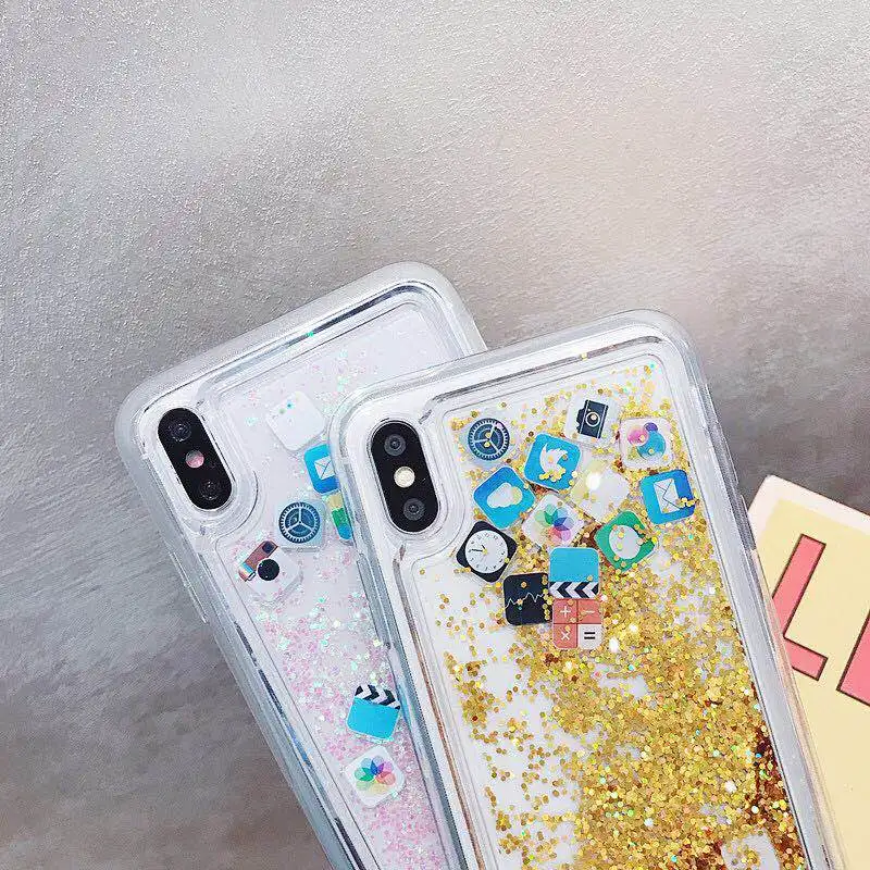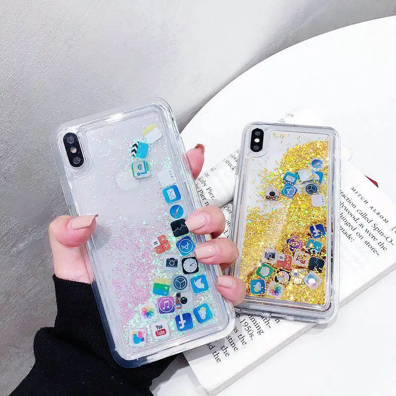 KISSCASE зыбучий песок Жесткий ПК прозрачный чехол для iPhone XRX XS MAX XSДинамическийМилый значок приложения на рабочем столеЖидкий чехол для iPhone 11 Pro Max 7 8 6 plus 11Pro 11 Capa Fundas Capinhas Carcasa Cover Coque Bag