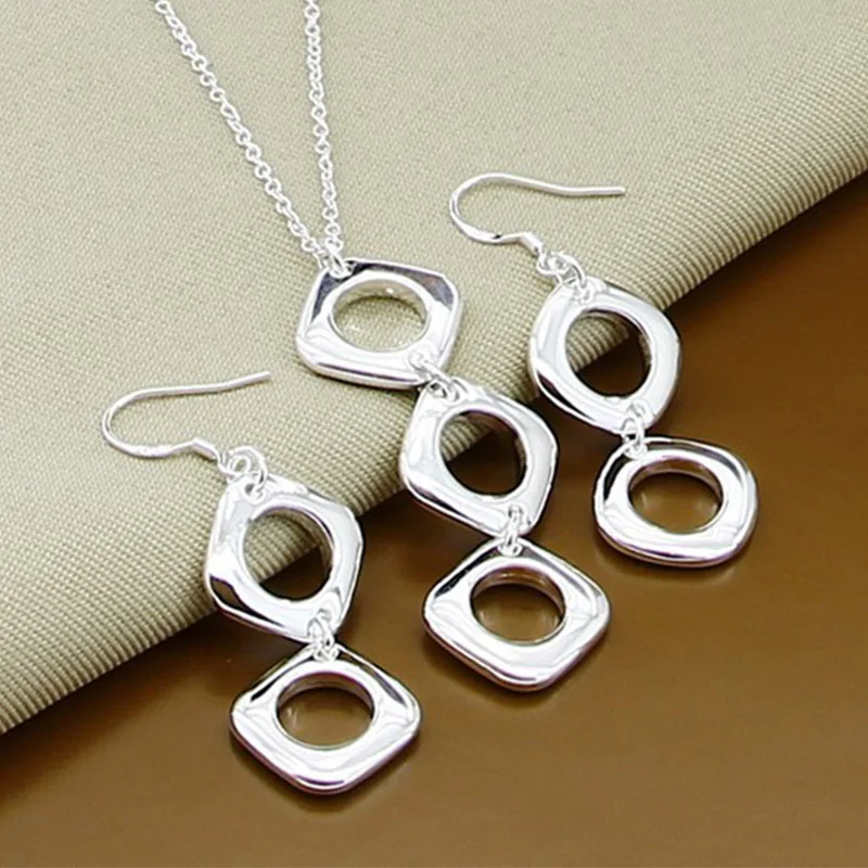 Африканские Ювелирные наборы 925 серебро колье с кулоном геометрической формы серьги набор дамские ювелирные изделия