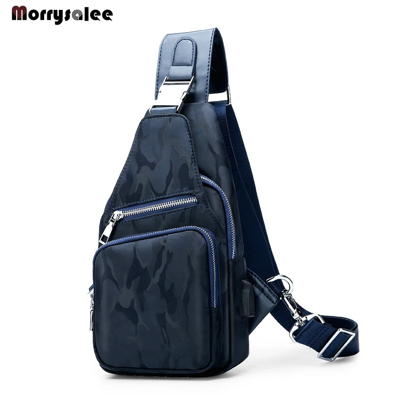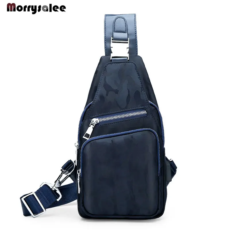 Мужская нагрудная сумка из ткани Оксфорд, Повседневная многофункциональная сумка через плечо с USB-зарядкой, 2019