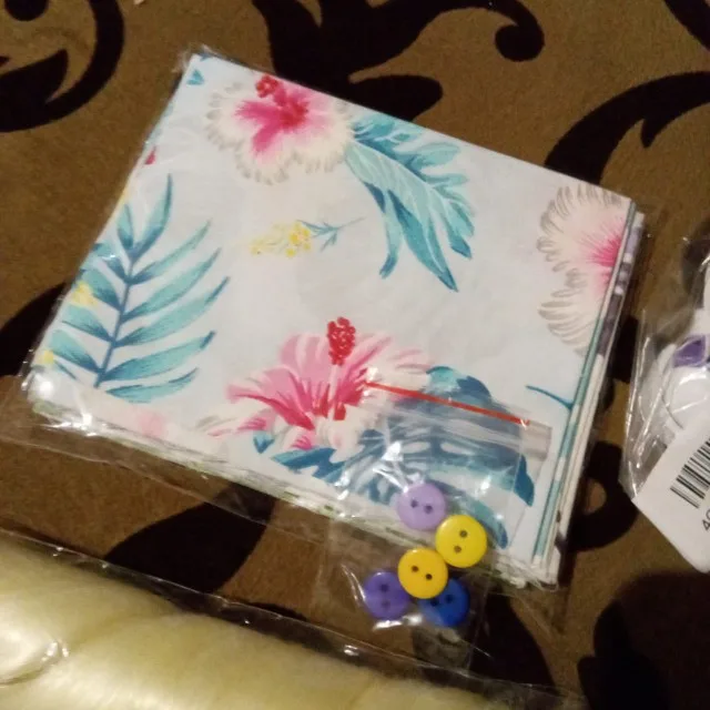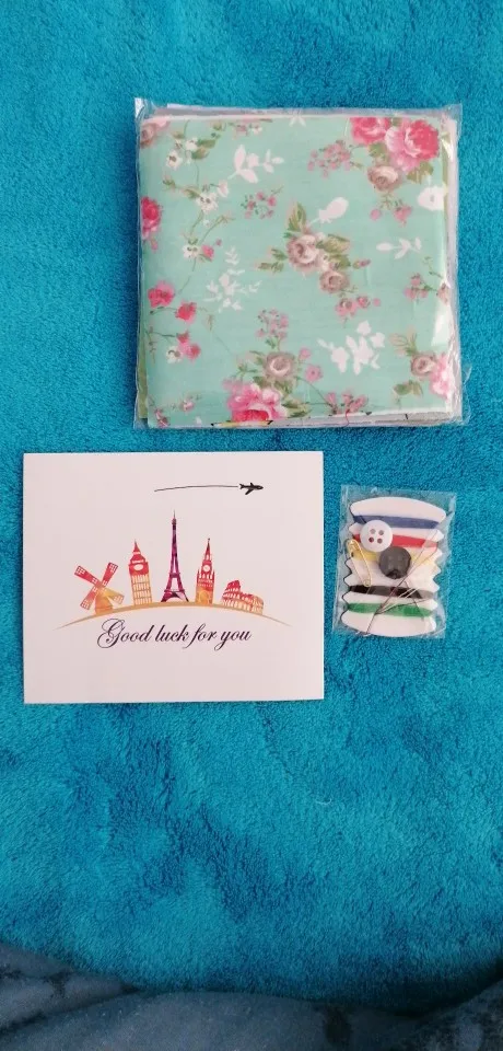 Посылочка пришла за три недели. Положили подарочек из набора ниточек цветных , иголки, булавки и пары пуговок.
