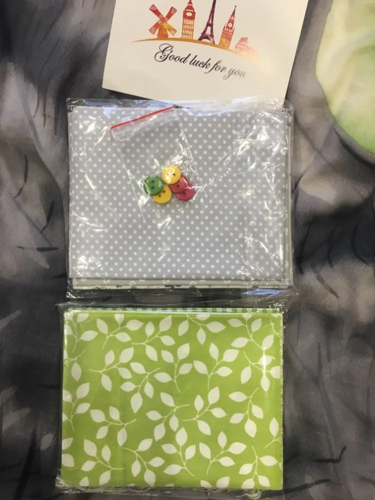 Доставка 18 дней, довольно быстро. Ткани отличные, яркие, сама ткань приятная, качественная: чистый хлопок. По размеру, количеству и цвету- полностью соответствует описанию и фото продавца. Продавец надёжный, спасибо ему за подарок: ниточки и 2 пуговицы. Приятно.