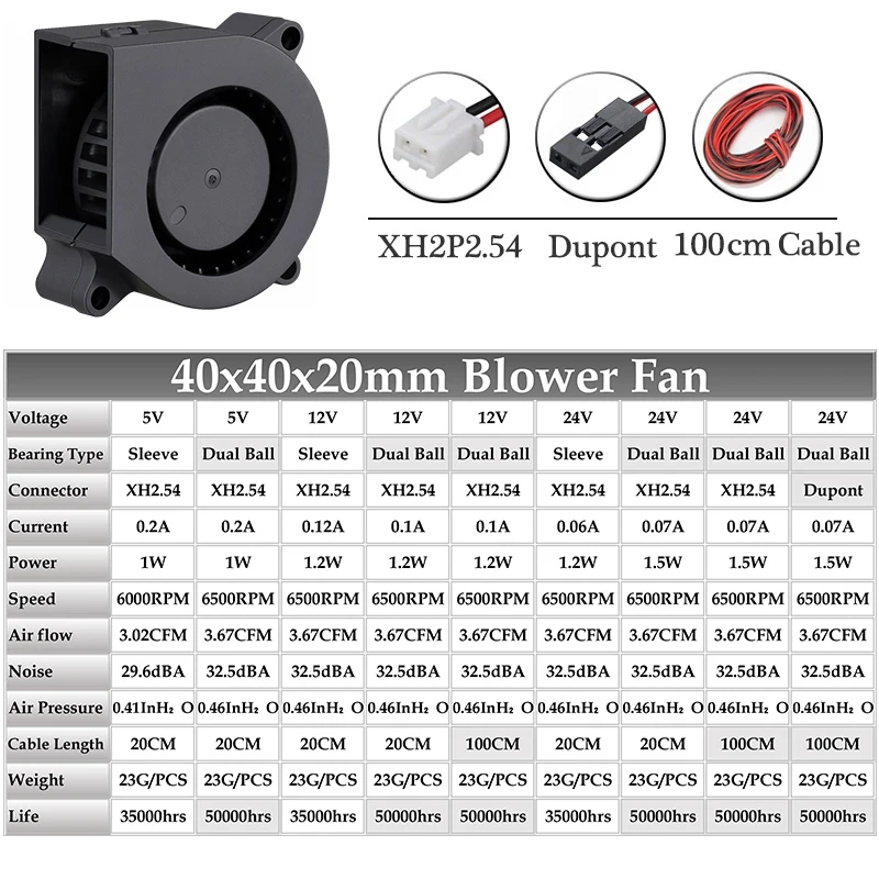 2 шт. Gdstime DC 5 в 12 В 24 в 40 мм вентилятор 40 мм x 20 мм турбонагнетатель кулер вентилятор 4020 4 см радиальный вытяжной двойной мяч радиатор для 3D-принтера вентилятор