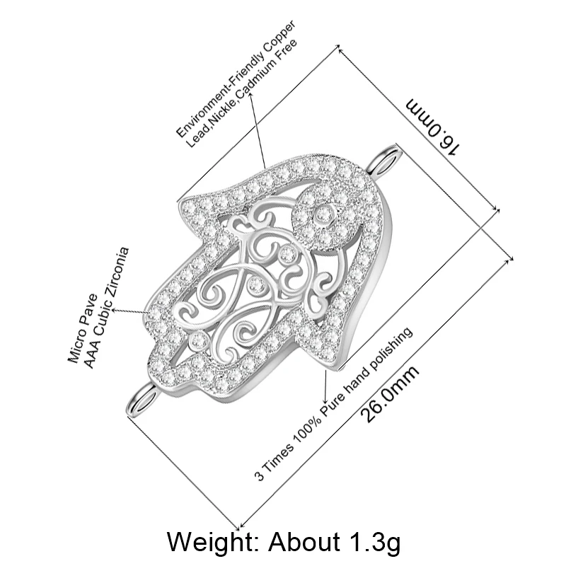 Product NameMicro Pave Zircon Hamsa Evil Eye Jewelry Connectors