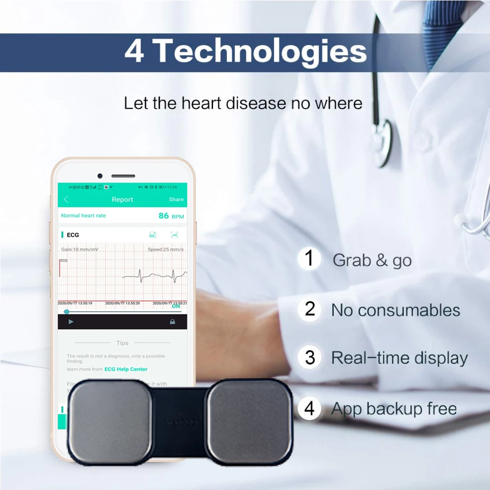 Беспроводное Bluetooth-устройство Портативный ЭКГ монитор, сердце без металлических электродов, для домашнего использования, мониторинг ЭКГ, ios, Android, запись