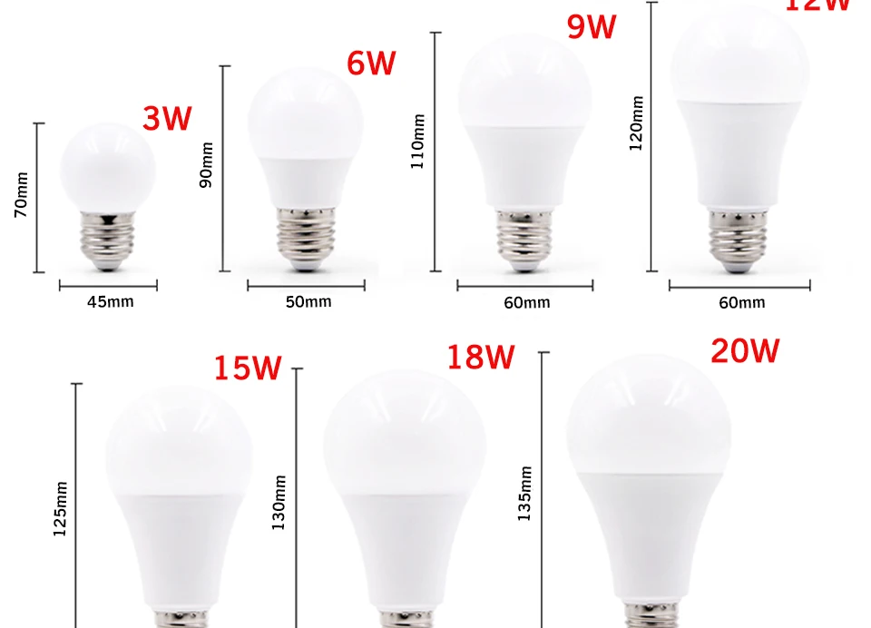 Светодиодная лампа, 2 шт.лот, Е27, 20 Вт, 18 Вт, 15 Вт, 12 Вт, 9 Вт, 6 Вт, 3 Вт, Bombilla, Е14, 220 В переменного тока, прожектор лампада, Холодныйтеплый белый свет