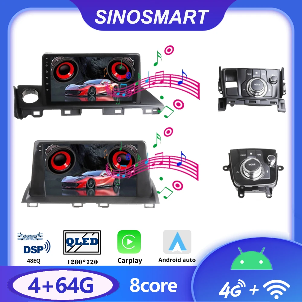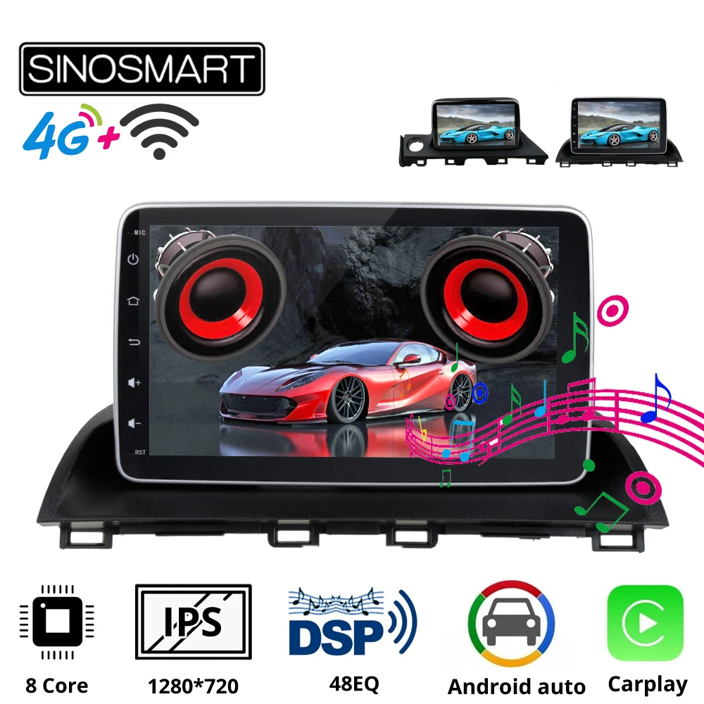 SINOSMART Автомобильный GPS навигационный плеер для Mazda 3 Axela 2014-2019 для Mazda 6 Atenza 2017-2018 Поддержка 8 ядер DSP 48EQ 2G4G RAM