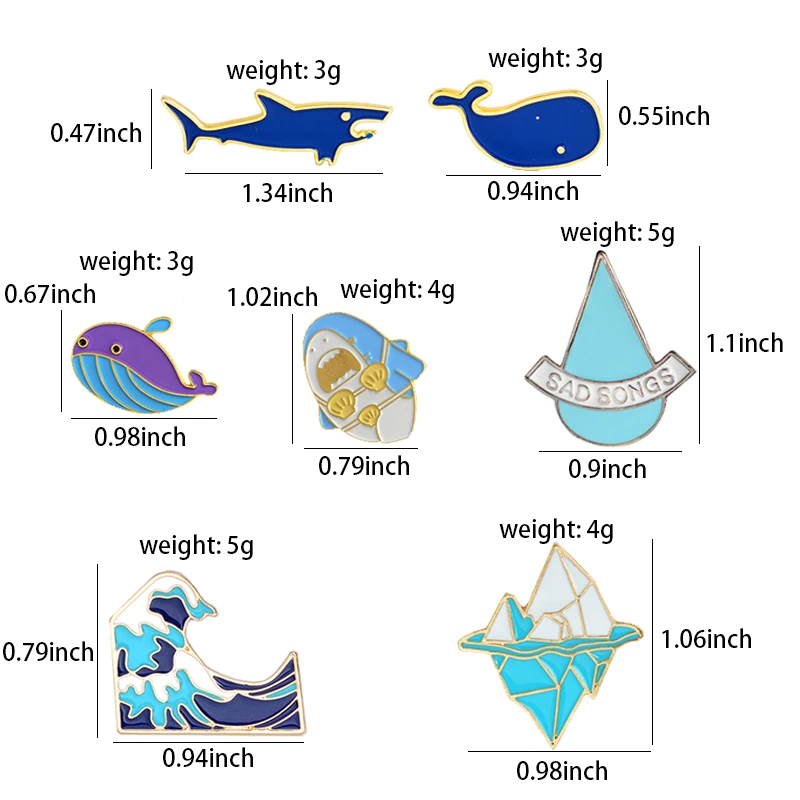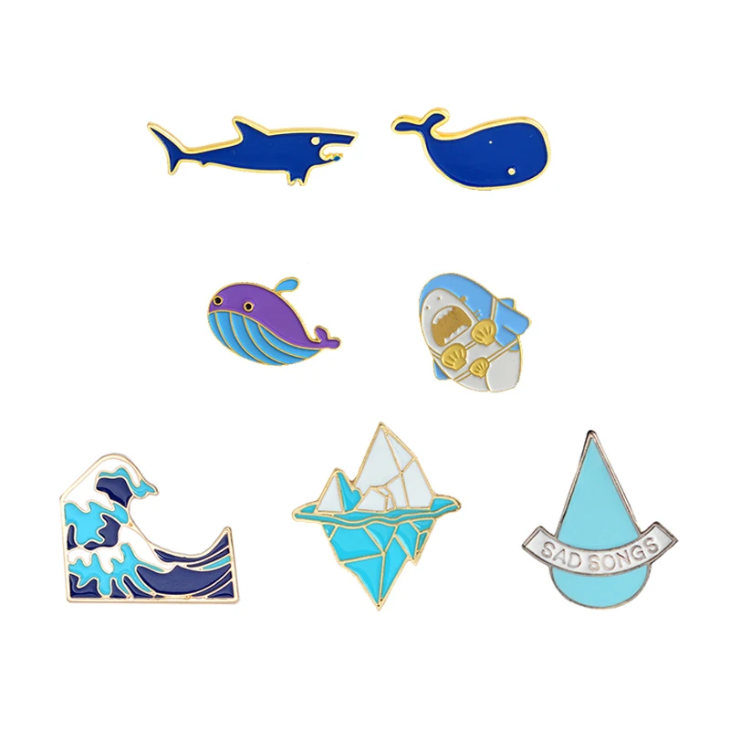 Иди на серфинг! Брошь на булавке, с эмалью, с изображением голубого айсберга, Кита, акулы, значок на лацкан для джинсовой рубашки, забавное мультяшное ювелирное украшение, подарок для детей