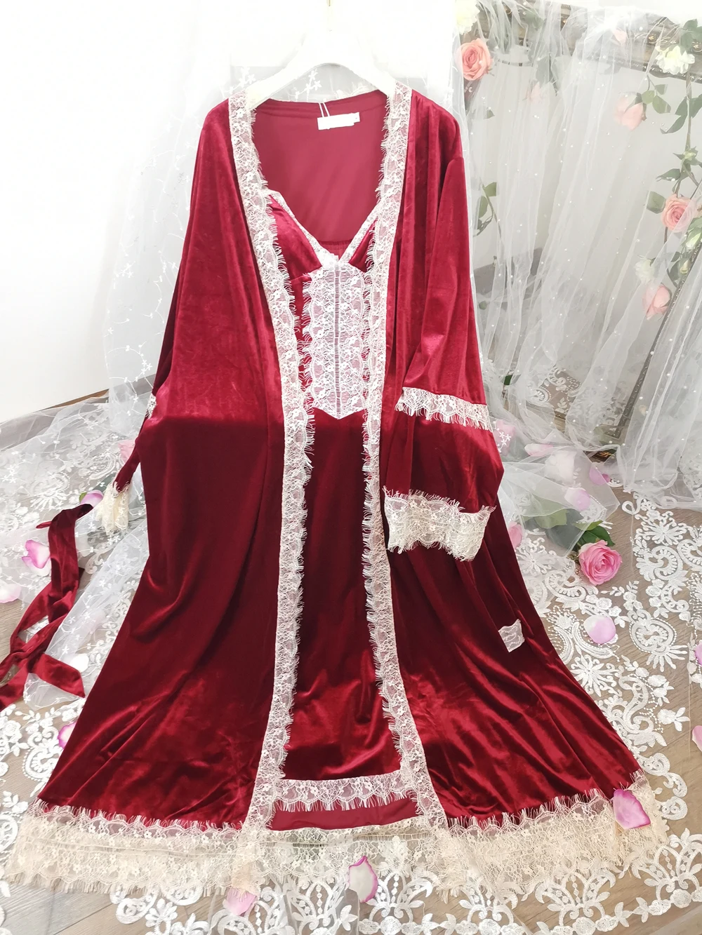 Женский Романтический халат, комплект ночной рубашки, зимняя ночная рубашка, Элегантная ночная рубашка невесты винного цвета