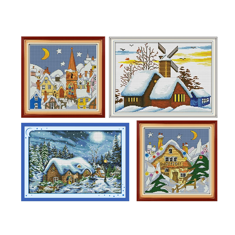 Набор для вышивки крестиком 14 карат, Зимняя серия снежных пейзажей сделай сам, Мультяшные принты, DMC холст, Китайская вышивка, подарок, украшения для дома