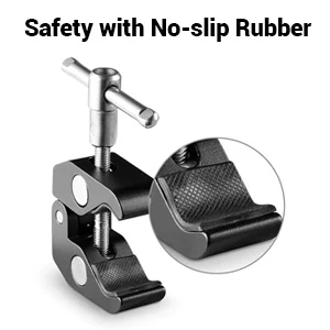 Супер Зажим SmallRig с резьбой 1/4 "и 3/8" (2 шт. в упаковке) 2058 Легкий и прочный. Он может блокировать стержни 15 мм-44 мм, которые могут быть затянуты рычагом блокировки. Его можно установить на любую камеру, освещение, зонты, крючки, полки, пластинчатое стекло, перекладины, даже другие супер зажимы очень стабильно. Он оснащен резьбовыми отверстиями 1/4 ''и 3/8'' для самостоятельной работы.