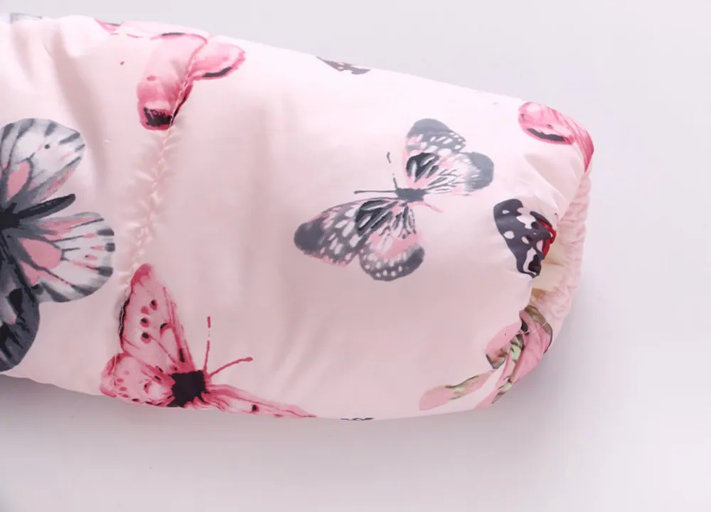 Зимняя теплая куртка с цветочным принтом и бабочками для маленьких мальчиков и девочек ветрозащитное пальто с капюшоном