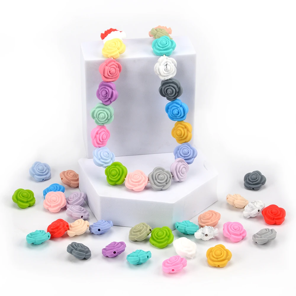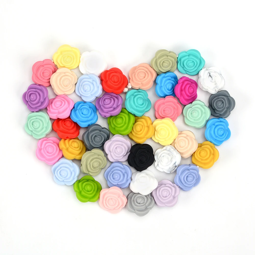 LOFCA 20 шт.лот горячая Распродажа 21 мм двусторонний цветок розы Силиконовые бусы для прорезывания зубов ожерелье без БФА