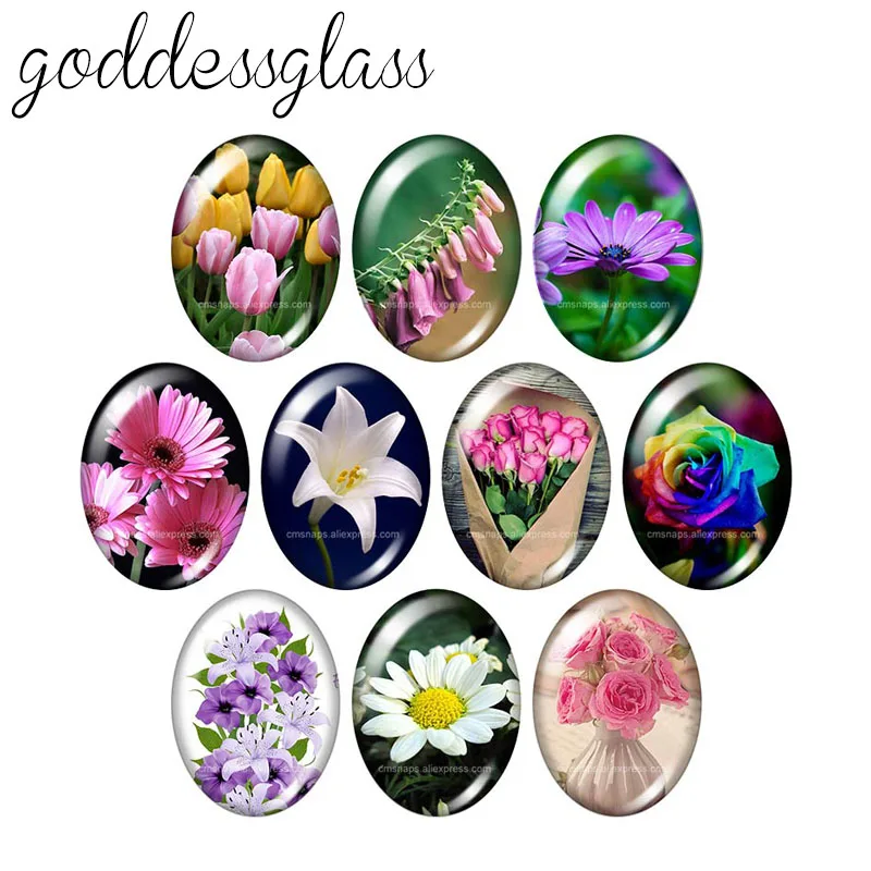 Красивые цветы, Маргаритка, лилия, 13x8 мм18x25 мм30x40 мм, овальное стекло, кабошон, демонстрация, с плоской задней частью TB0007