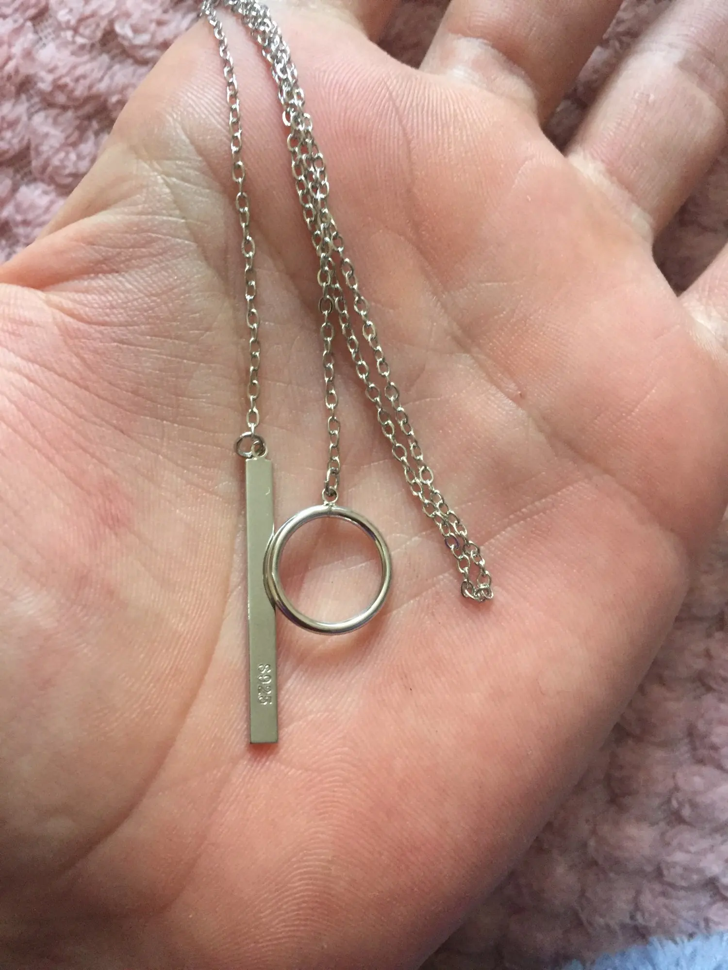 Оочень долгая доставка! Хотела спор открывать, прям в последний день пришла. Все как в описании. Стоит метка пробы, но вообще сомневаюсь что это серебро, тем более за такие смешные копейки. Вцелом очень классная подвеска, немного длиннее чем я думала.