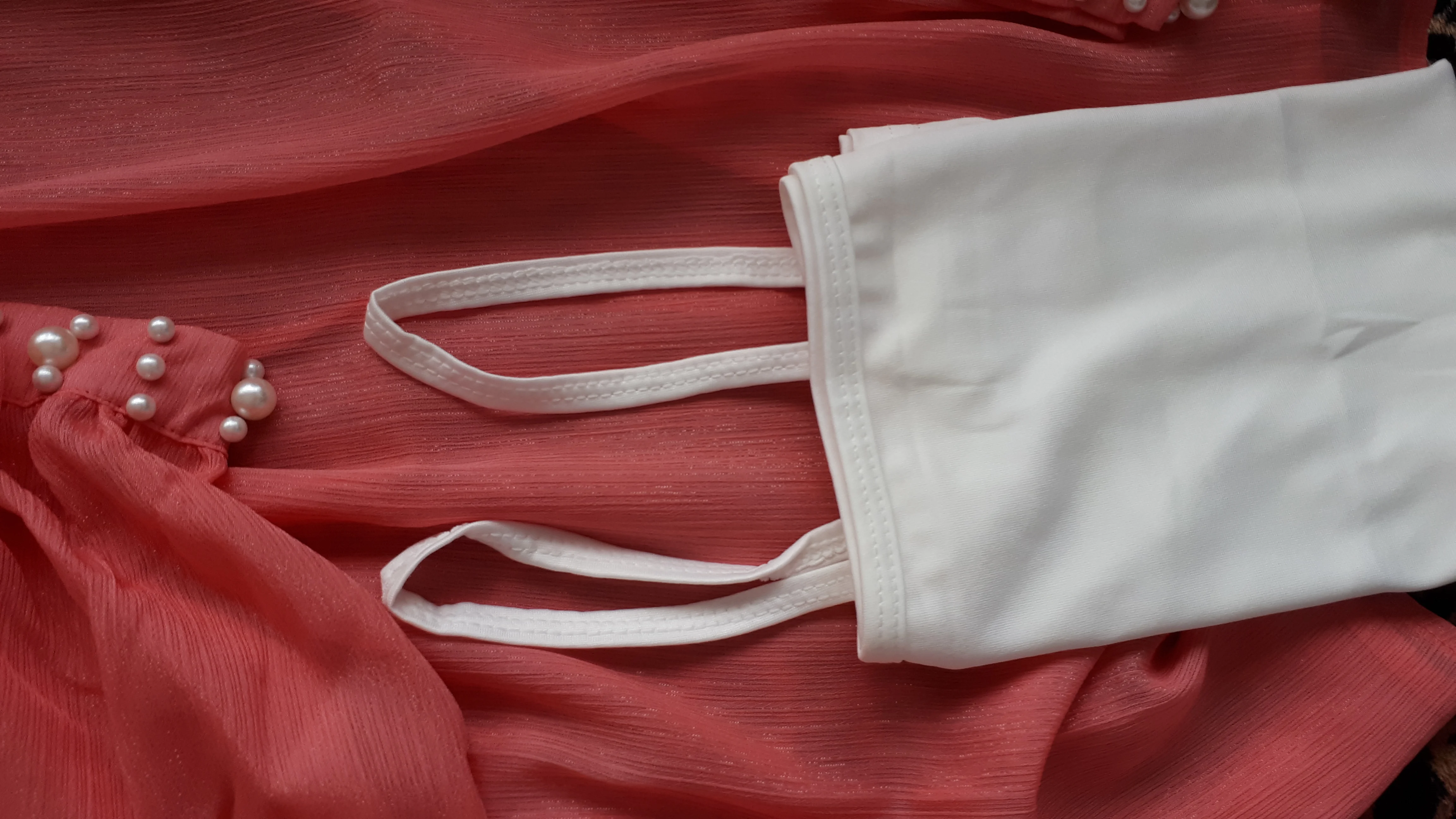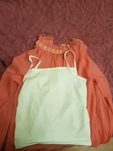 Доставили очень быстро, за 13 дней в Псков, курьером, в постамат. Очень красивая, нарядная блузка. ткань жатая, это видно на фото продавца. А вот чего не видно, это того, что ткань с металлизированной нитью. ткань поблёскивает искорками, что украшает блузку. Но из - за металлизированной нити ткань жестковата, колется на швах (швы рукавов) и колет шею воротник - стойка. С блузкой в комплекте идёт топ - белого цвета, из очень мягкой, очень эластичной ткани. Благодаря эластичности ткани топ, хоть и небольшого размера, прекрасно растягивается. Но потом стремится вернутся в свой размер и получается, что топ коротковат. И, конечно, было бы лучше, если бы он был розовым, в тон блузки.