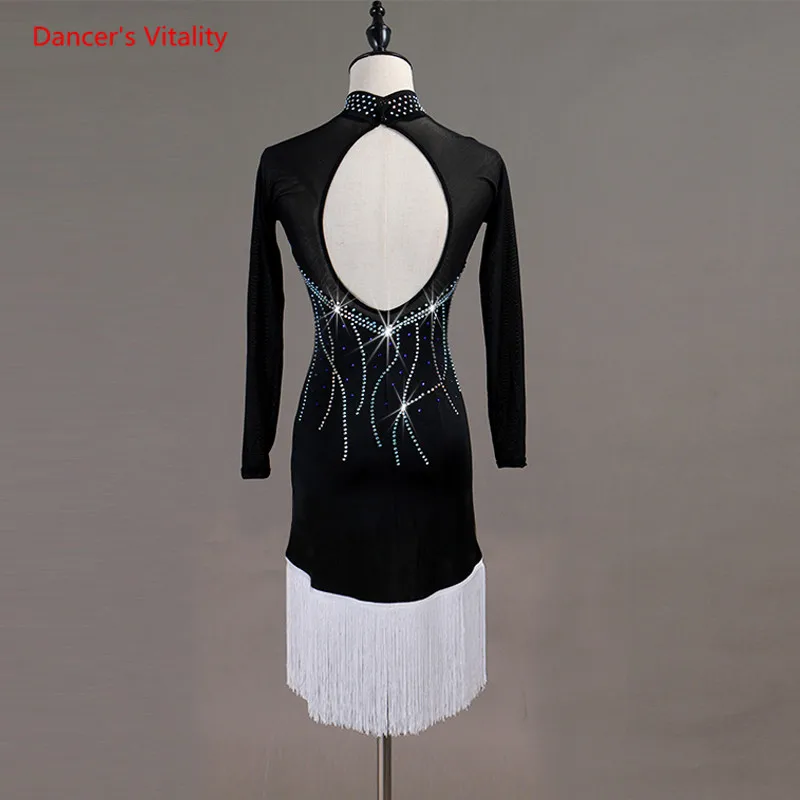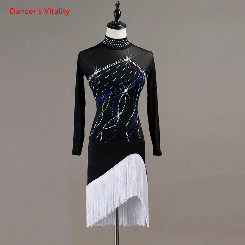 Женское платье для латинских танцев, костюмы для выступлений, сексуальные газовые платья с длинными рукавами и кисточками, платья для взрослых, одежда для латинских бальных танцев