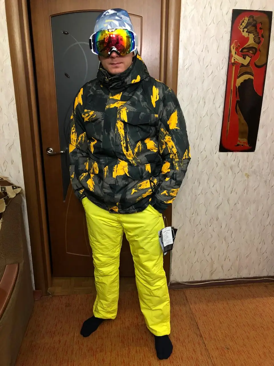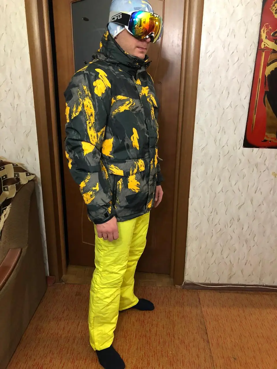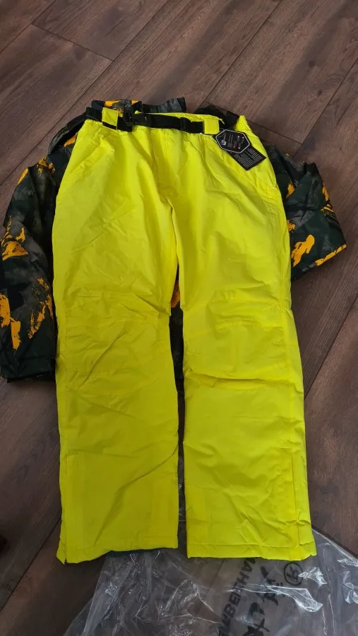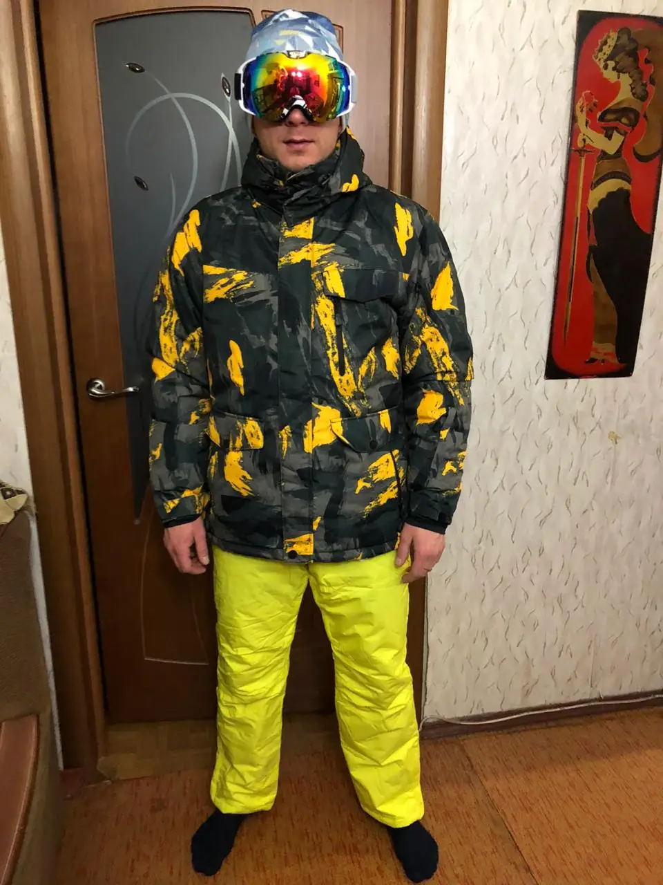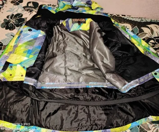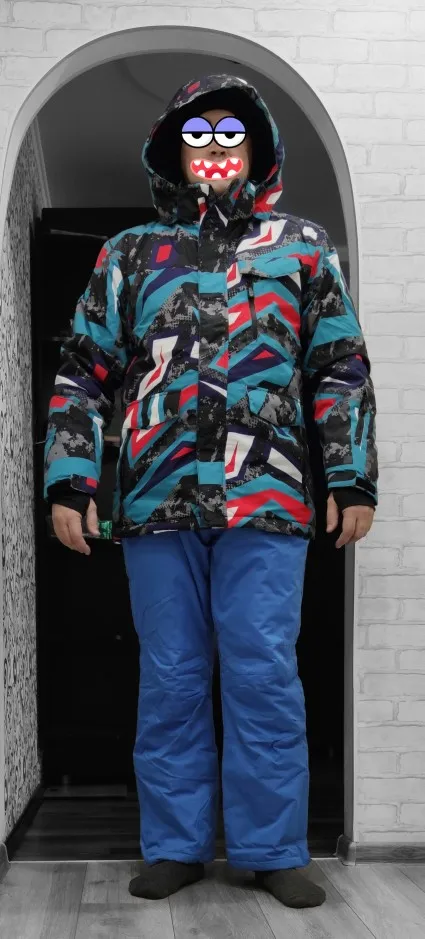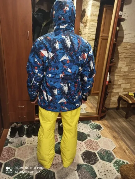 костюм хороший, сшит аккуратно,цвет насыщенный прям лимонный и бирюза очень красивый, брюки отличаются по качеству от куртки. есть внутренние карманы, проветривание на куртке и на штанах, капюшон и подтяжки отстегиваются. отправили разными пакетами, и на разные отделения почты. отслеживалось. с продавцом не общалась. прислали ещё в подарок брелок. брала xxxl куртка длина от плеча до плеча по спинке 52 см, длина в районе живота 66 см длина брюк от пояса 110см от мотни 80 см. довольна