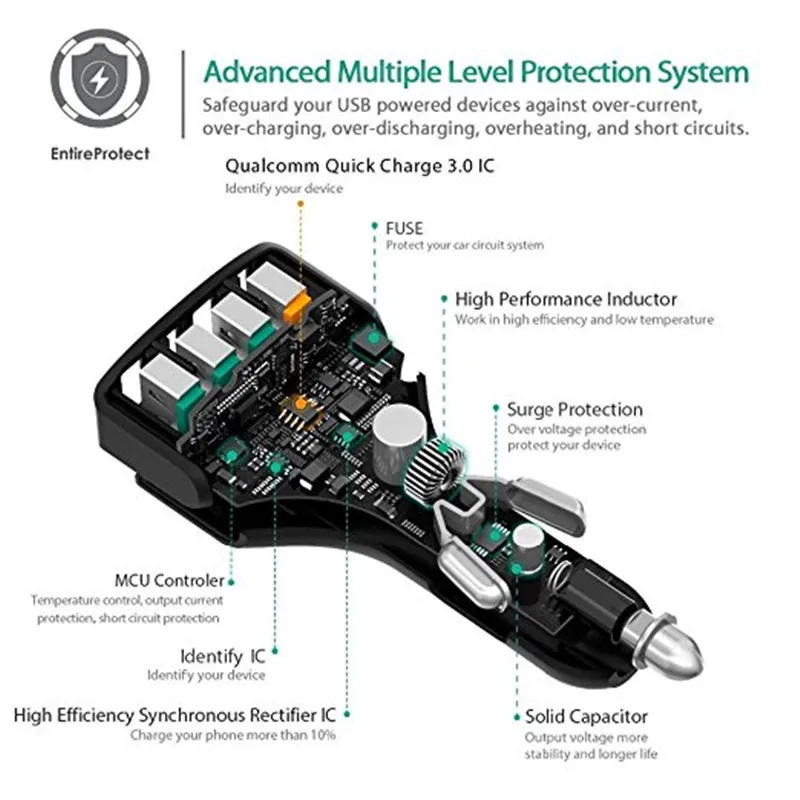 4-usb QC 3.0 Car Charger output5V-7A, 9V-1.8A, 12V-1.5A