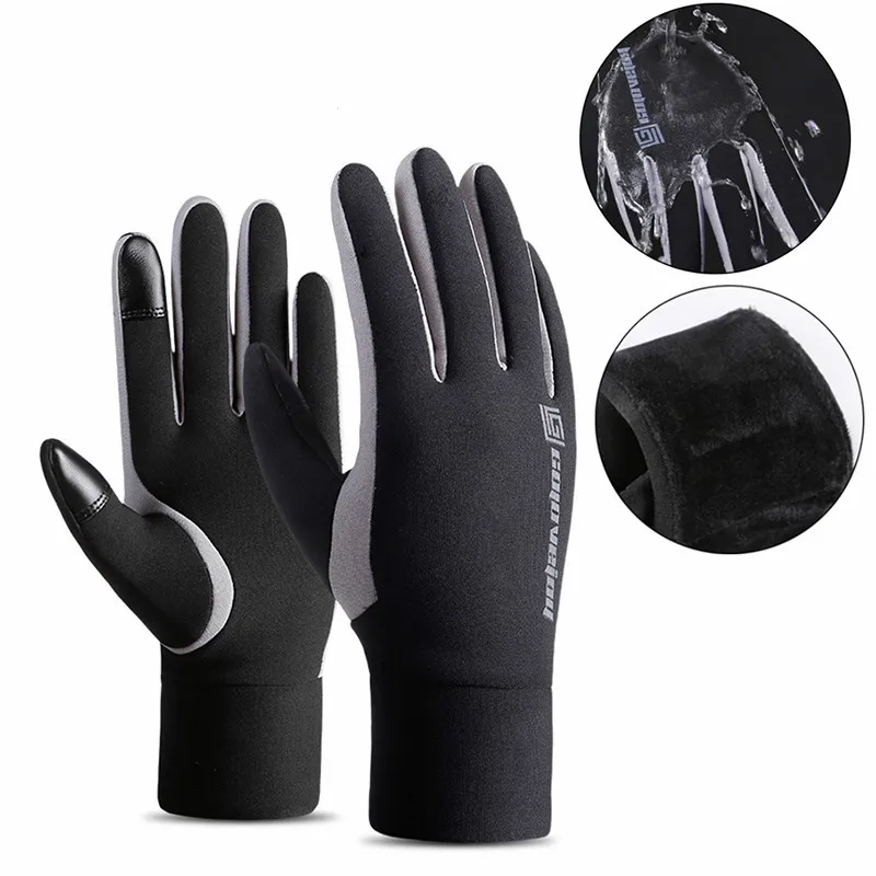 Новые модные перчатки с сенсорным экраном, спортивные перчатки для бега на открытом воздухе, мужские Зимние флисовые перчатки для катания на лыжах, водонепроницаемые велосипедные перчатки