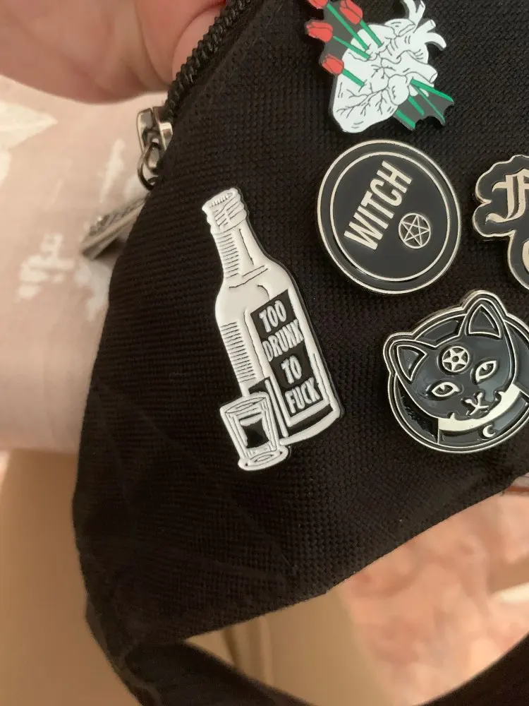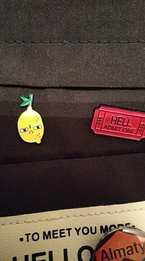 Значок не пластиковый (какими часто приходят с Али), а из хорошего металла. Крепится качественно и не слетит с сумки без моего вмешательства. В общем — огонь. Лучший значок, который я покупала!