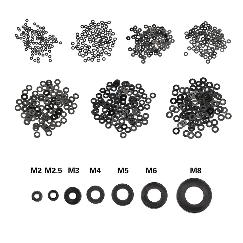 100 шт., M2, M2, M2, M3, M4, M5, M6, M8, черная пластиковая нейлоновая шайба, плоская прокладка