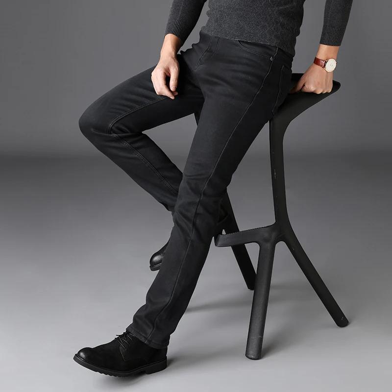 Брендовые джинсовые брюки, Мужская одежда, новинка 2020, черные эластичные узкие джинсы, деловые повседневные мужские джинсовые узкие брюки, классический стиль