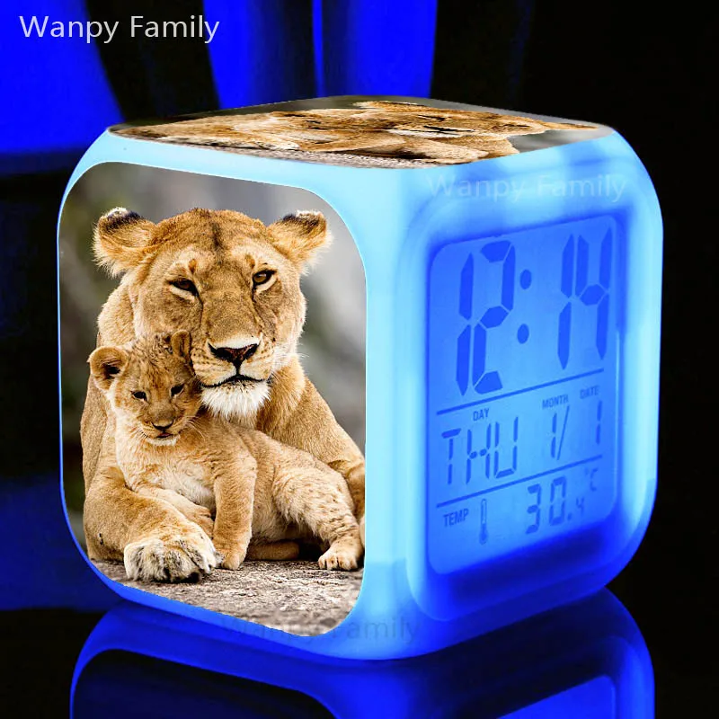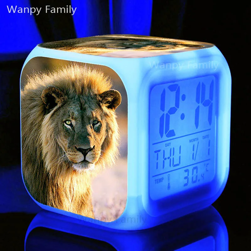 Царь зверей лев Будильник 7 цветов светящийся светодиодный часы для детей подарок на день рождения многофункциональные настольные цифровые часы-будильник