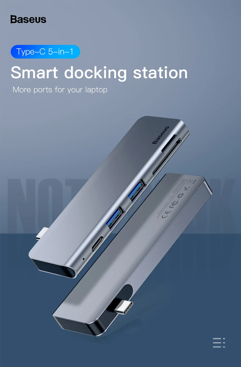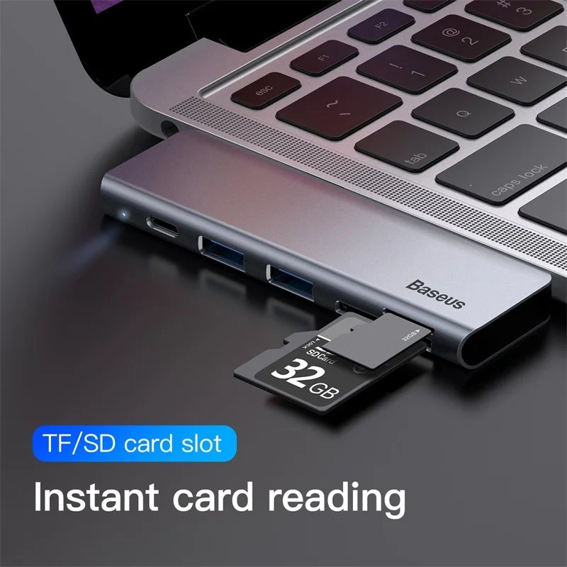 USB-концентратор Baseus для MacBook Air 3,0, SD-карт, кардридер PD 60 Вт, поддержка быстрой зарядки