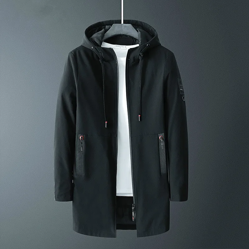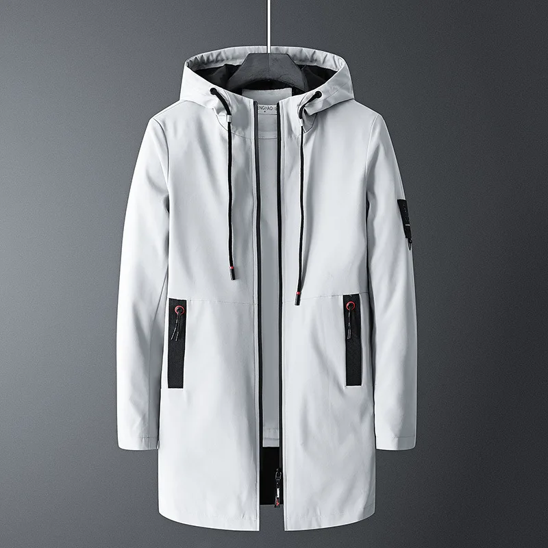 Новая весенне-осенняя Повседневная Длинная куртка, Мужская мода с капюшоном, приталенный тонкий мужской длинный Тренч, быстросохнущие куртки, Мужская брендовая одежда