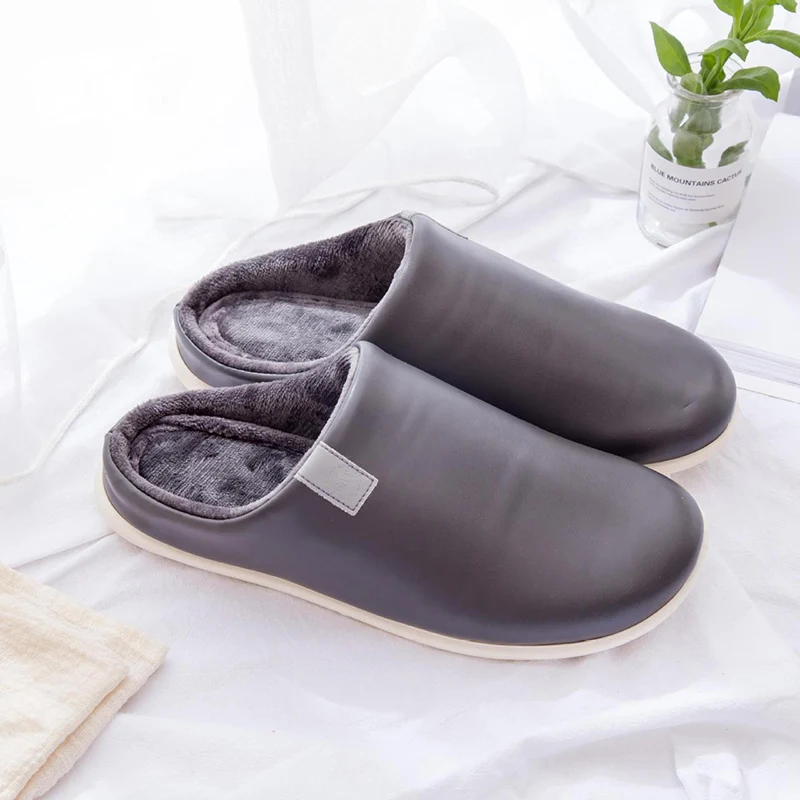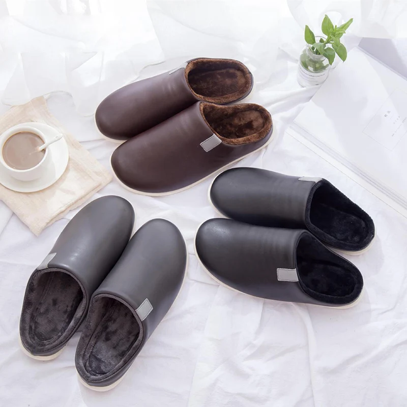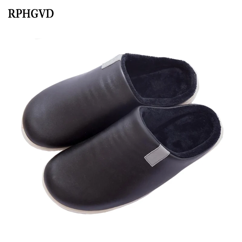 Мужские тапочки ; Новинка; Большие размеры ; Мужские теплые тапочки ; Зимние домашние тапочки для пар; Теплые хлопковые тапочки из искусственной кожи ; Размеры 41-46