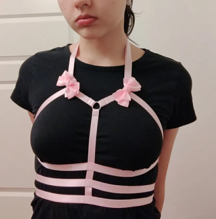 Бюстгальтер с бантом, оригинальный дизайн, розовый, с открытой грудью, пастельный, готический